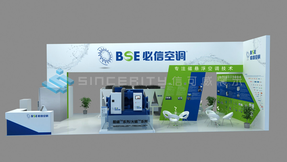必信空調(diào),蘇州必信空調(diào)有限公司位于蘇州高新區(qū)科技城,是國(guó)內(nèi)一家專(zhuān)注于磁懸浮空調(diào)技術(shù)的國(guó)家級(jí)高新技術(shù)企業(yè)。必信空調(diào)展臺(tái)設(shè)計(jì)融科技、環(huán)保于一體,契合必信空調(diào)“中國(guó)智造”的經(jīng)營(yíng)戰(zhàn)略,呼應(yīng)“新時(shí)代、新智造、新征程”主題,折射出高效、節(jié)能、環(huán)保的產(chǎn)品定位。