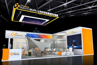 展臺的色彩設計以藍色和白色為主,給人一種專業、可靠和環保的感覺。這種色彩搭配不僅符合公司的品牌形象,還能吸引參觀者的注意力。展臺上方懸掛著公司的標志和口號,增強了品牌的可見度和識別度。