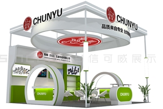 其實不論對于設(shè)計師還是參展商來說,整個展臺的造型是至關(guān)重要的,也許有的時候我們考慮了展臺的空間,展臺的顏色,展臺的物品展示,但是這些都是基于整個展臺的整體造型設(shè)計來決定的,在這次展臺設(shè)計中,因為面積不是很大,那么設(shè)計師為了后期洽談間空間大一點,顯得寬敞一點,頂部采用的是弧形設(shè)計,弧形設(shè)計的最大優(yōu)勢就是可以根據(jù)弧度的大小添加參展商的宣傳廣告和企業(yè)名稱,吸引客戶想了解此公司具體是做什么食品,吸引客戶的好奇心。